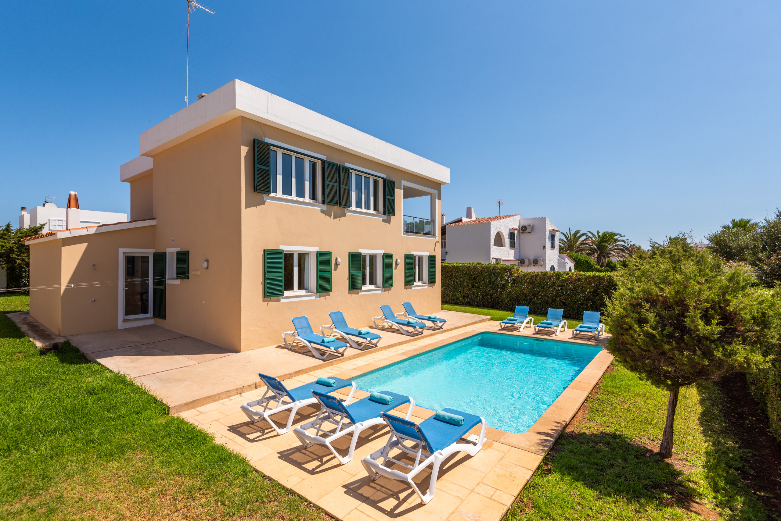The villa in Cala en Bosch, of 180 m², has 5 bedrooms with capacity for 10 people.