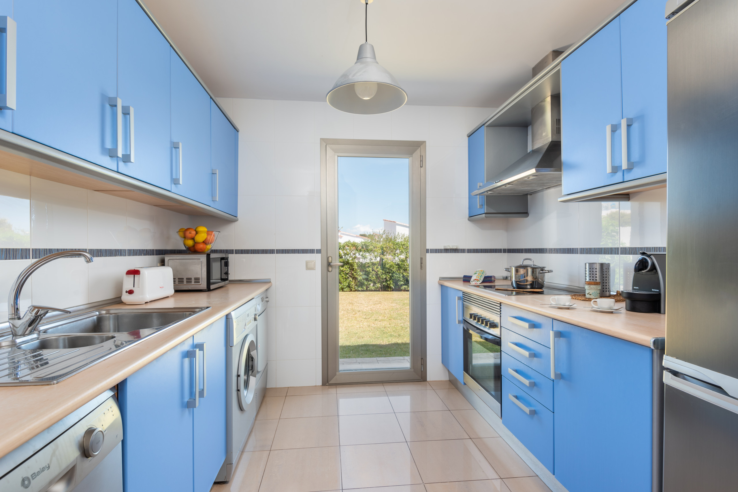 La cuisine est indépendante avec une plaque vitrocéramique, elle est équipée d'un réfrigérateur, d'un micro-ondes, d'un four, d'un congélateur, d'un lave-vaisselle, de vaisselle/couverts, d'ustensiles de cuisine, d'une cafetière et d'un grille pain.